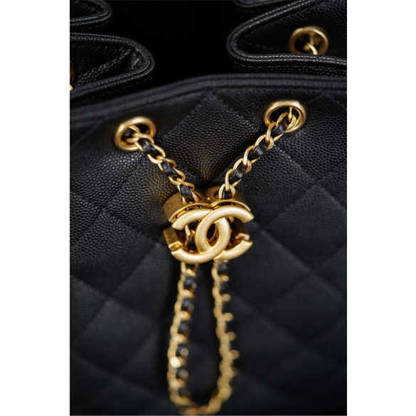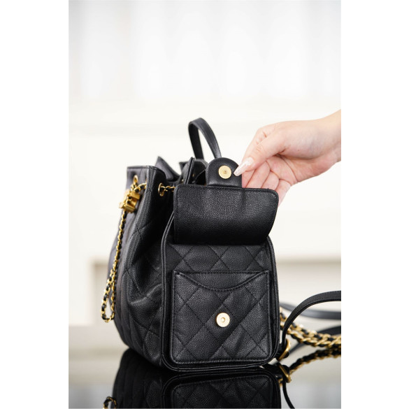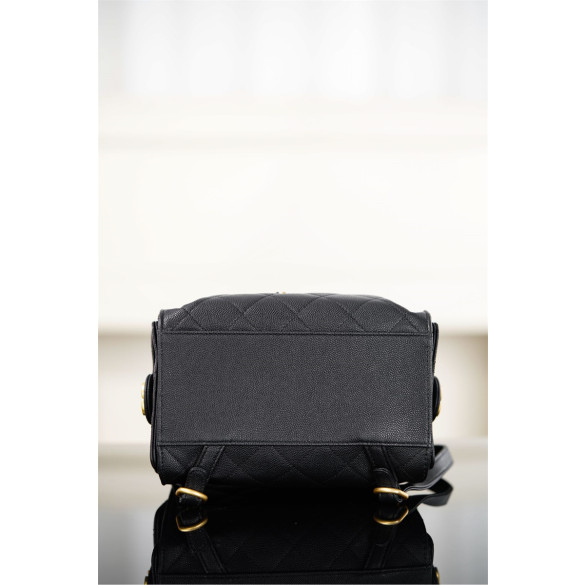 샤넬 25 미디엄 백팩 골드 메탈 블랙 캐비어