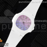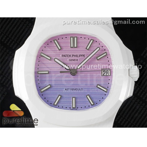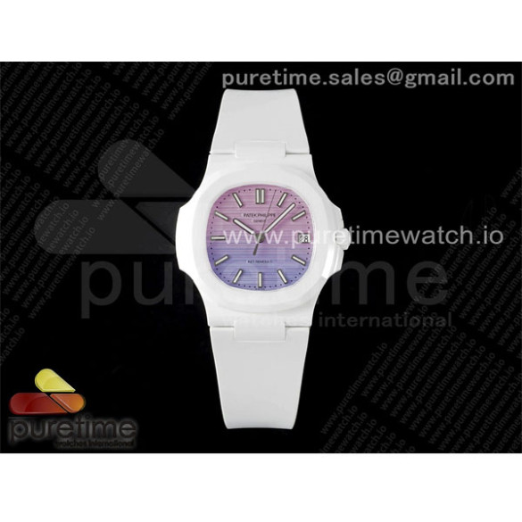 AMG공장 파텍필립 노틸러스 5711 화이트풀세라믹 퍼플그라데이션다이얼 화이트러버스트랩 AET Nautilus 5711 White Ceramic AMGF Best Edition Purple_Pink Dial on White Rubber Strap MIYOTA 9015