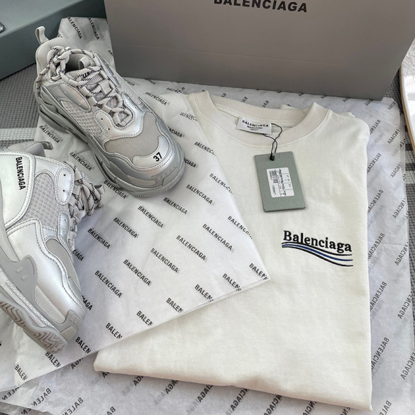 발렌시아가 웨이브로고 자수 반팔 티셔츠