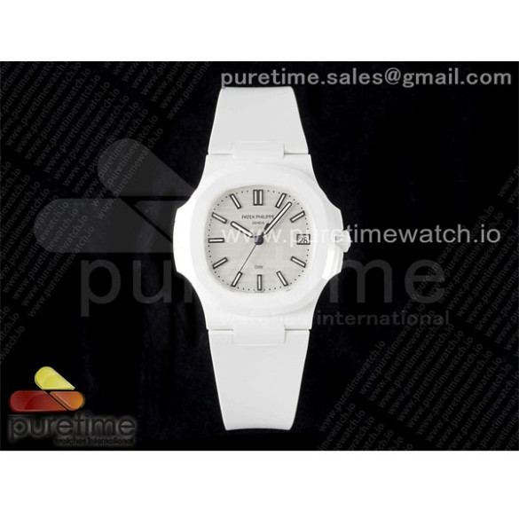 AMG공장 파텍필립 노틸러스 5711 화이트풀세라믹 화이트다이얼 화이트러버스트랩 AET Nautilus 5711 White Ceramic AMGF Best Edition White Dial on White Rubber Strap MIYOTA 9015