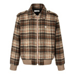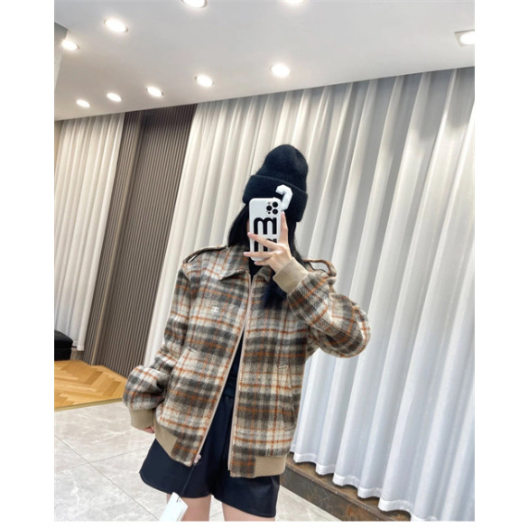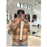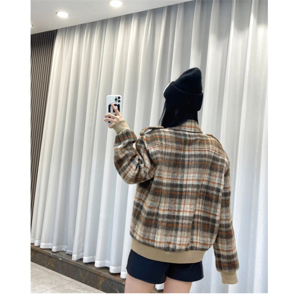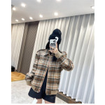 셀린느 트리오페 로고 자수 배색 체크 테디 자켓