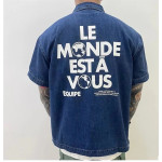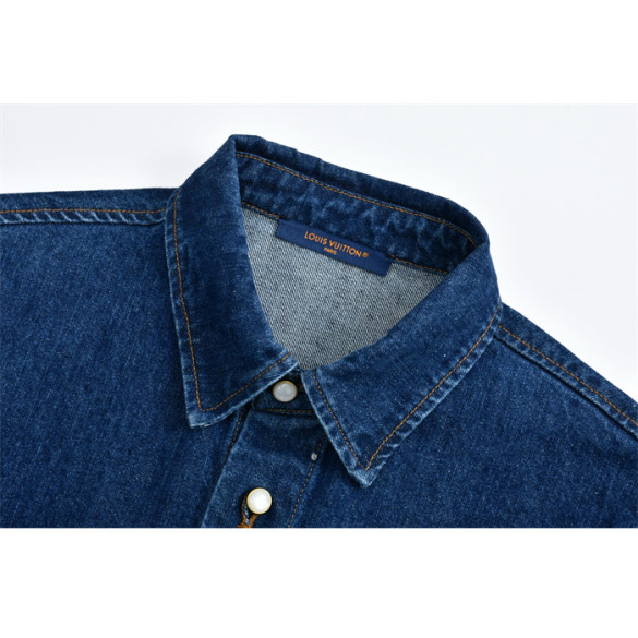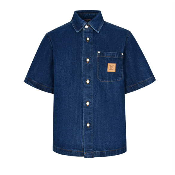 루이비통 VVN 라벨 데님 블렌드 쇼트 슬리브드 셔츠