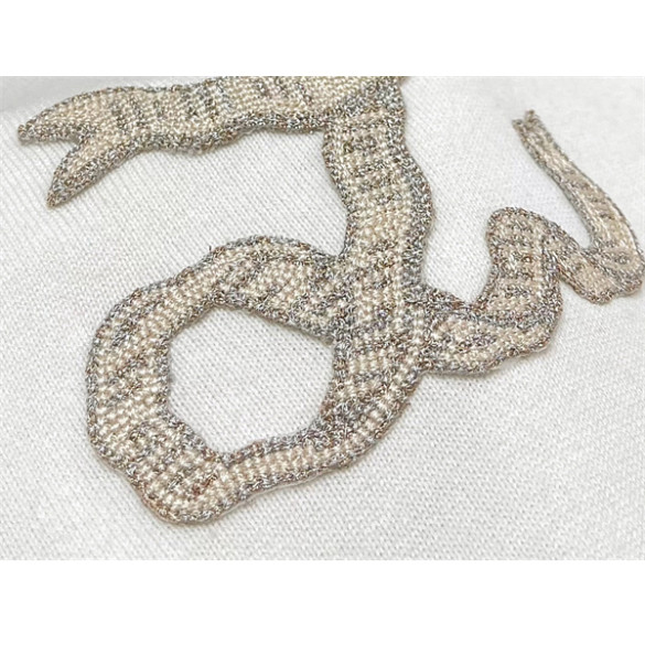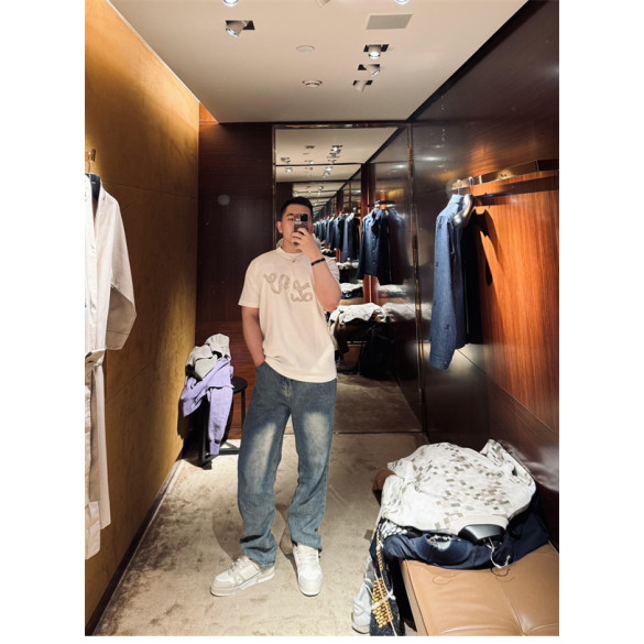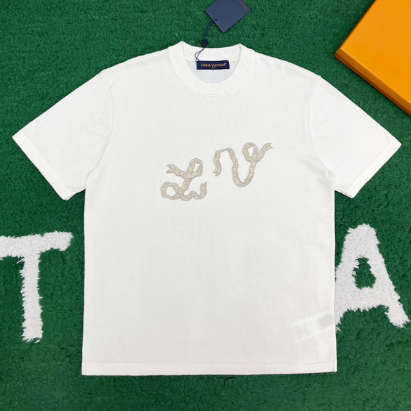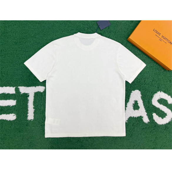 루이비통 리본 LV 자수 반소매 코튼 크루넥