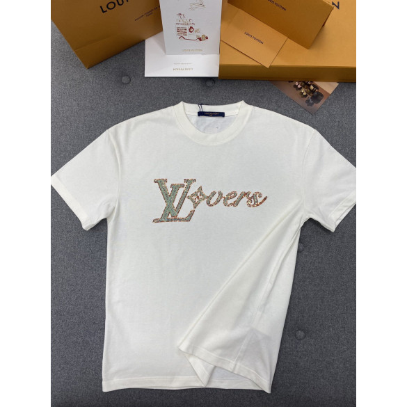루이비통 비즈 시퀸 LV러버스 시그니처 오가닉 코튼 레귤러핏 반팔 티셔츠