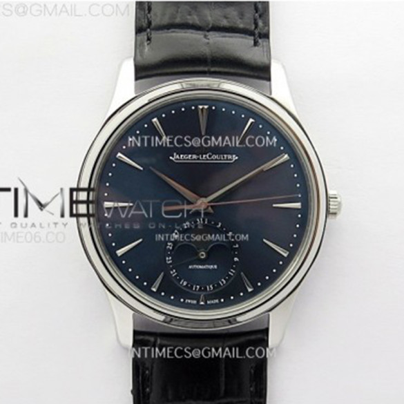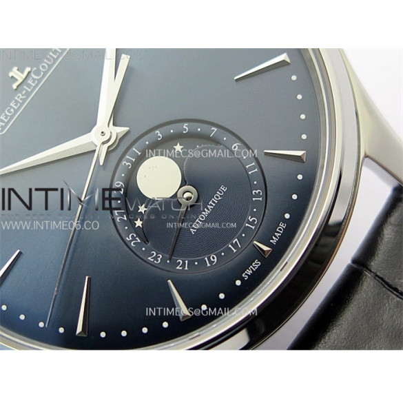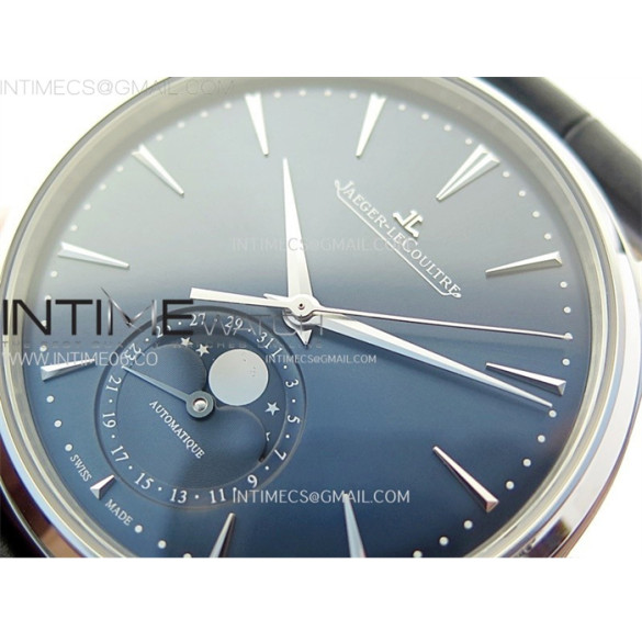 ZF공장 예거르쿨트르 마스터 울트라씬 문페이즈 스틸 블루다이얼 블랙가죽스트랩 Master Ultra Thin Moon 1368420 SS ZF 1:1 Best Edition Blue Dial on Black Leather Strap V3 SA925 Super Clone