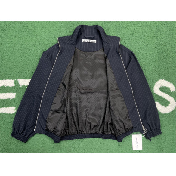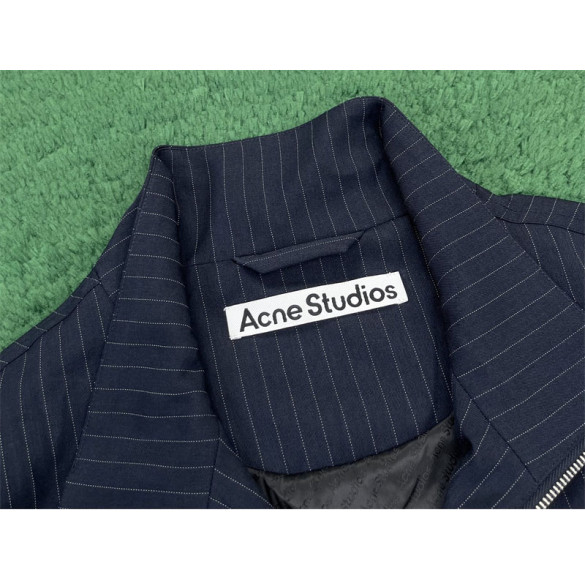 아크네 핀 스트라이프 하이넥 시즌 보우 자수 릴랙스핏 자켓