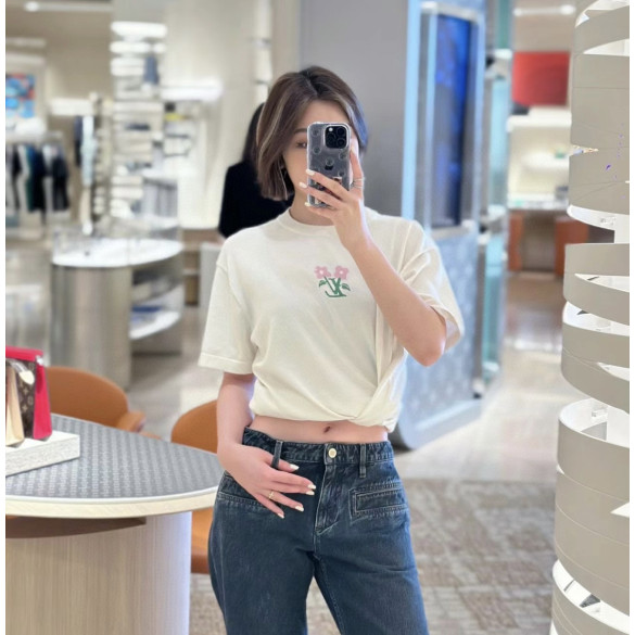 루이비통 X 타일러 블루밍 LV 인따르시아 시그니처 니트 크루넥 반팔 티셔츠