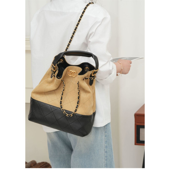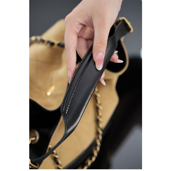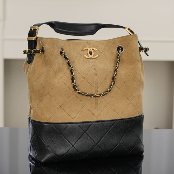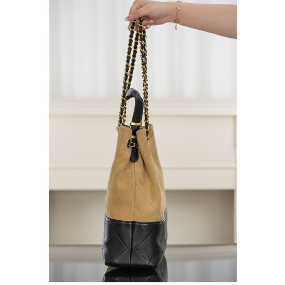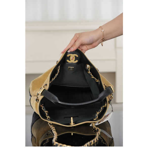 샤넬 25A 스웨이드 카프스킨 골드 메탈 쇼핑 백