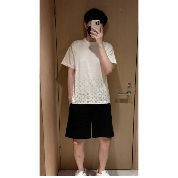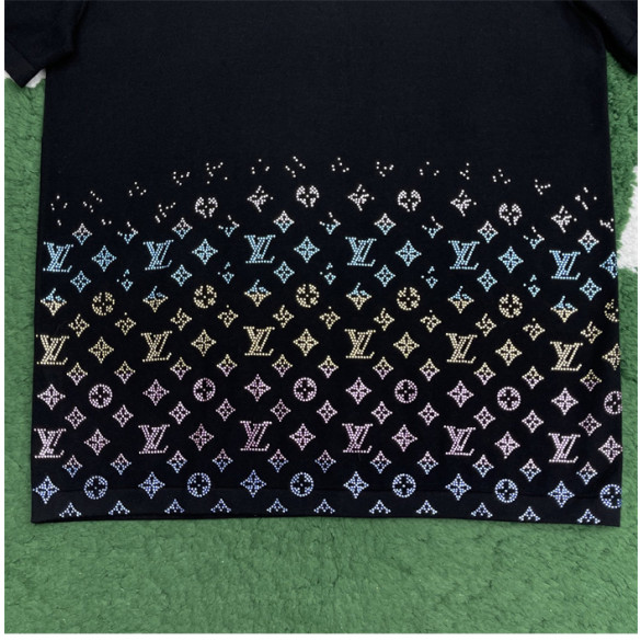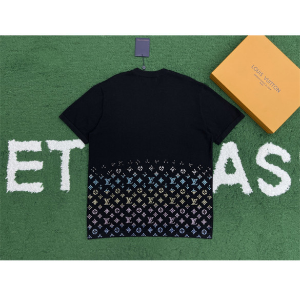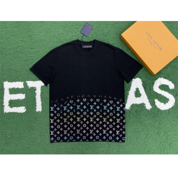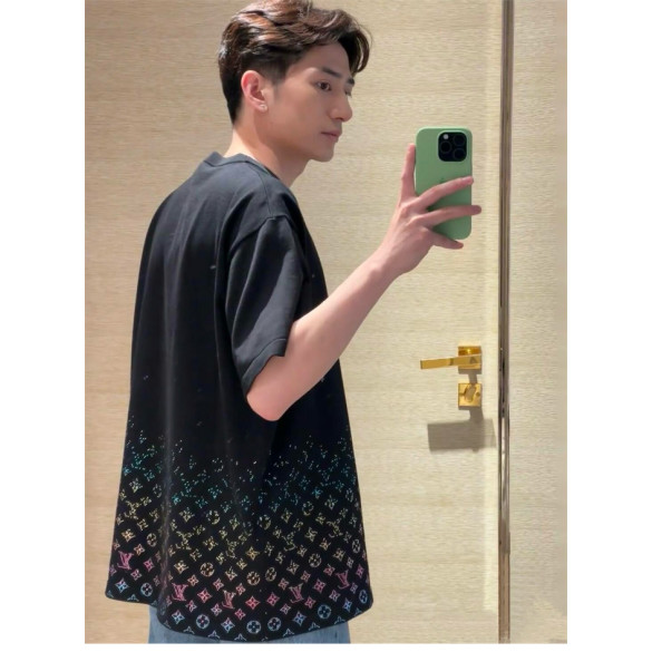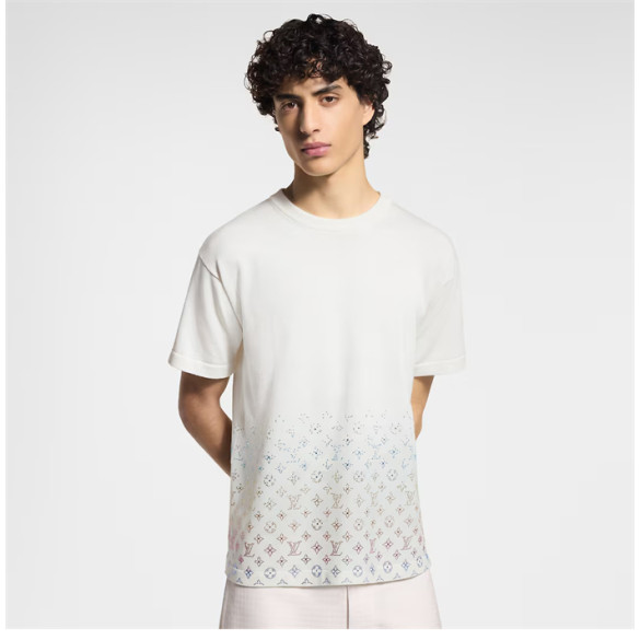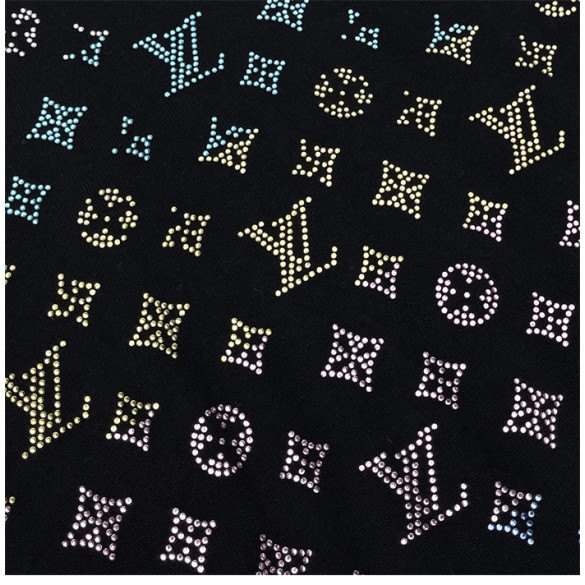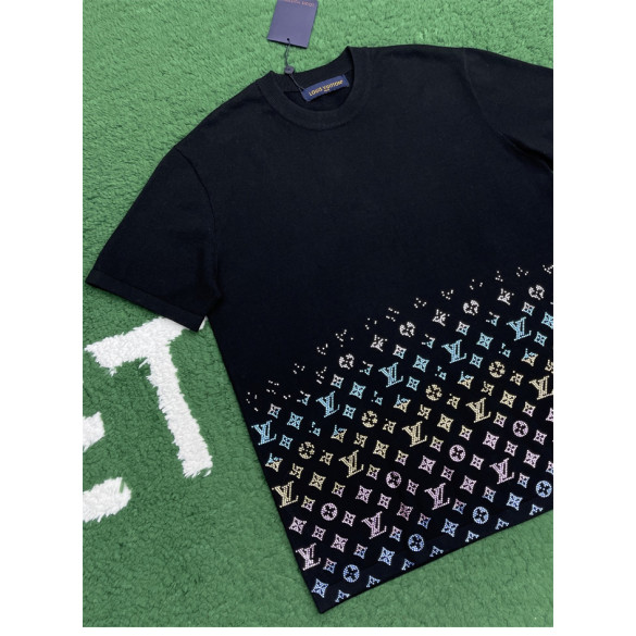 루이비통 라인스톤 크리스탈 모노그램 그라디언트 엠벨리시드 반팔 티셔츠