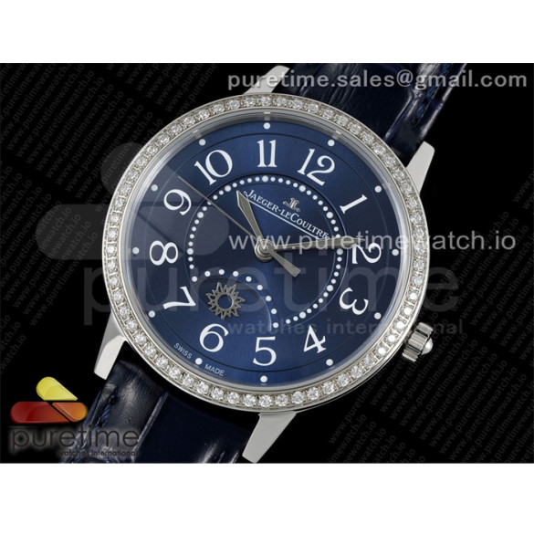 APS공장 예거르쿨트르 랑데뷰 나잇앤데이 스틸 다이아몬드베젤 블루다이얼 가죽스트랩 Rendez-Vous Night & Day SS APSF 1_1 Best Edition Blue Textured Dial Diamonds Bezel on Blue Leather Strap SA898 (#001)
