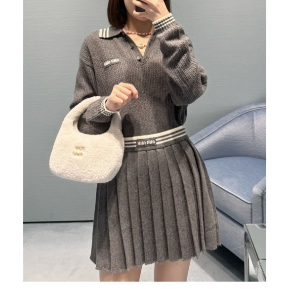 미우미우 울 캐시미어 플리츠 미니 스커트