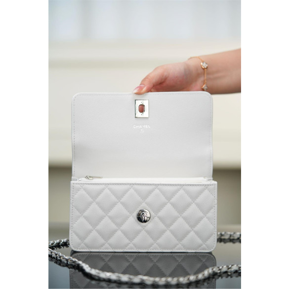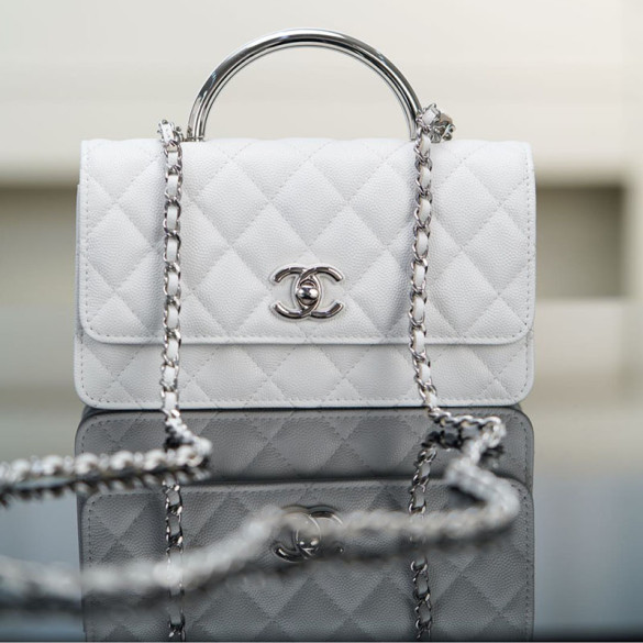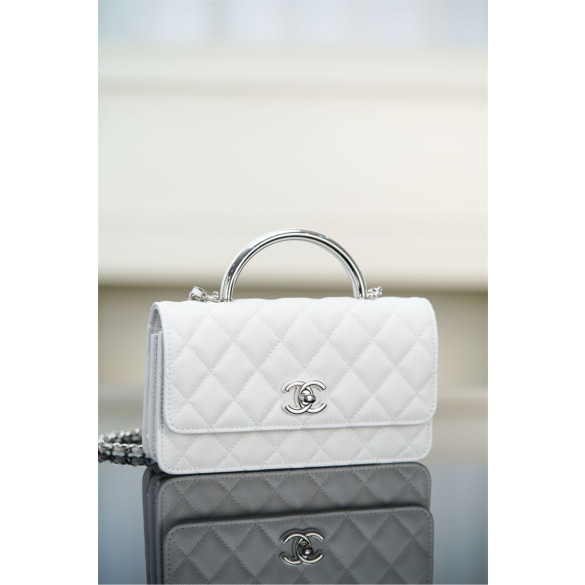 샤넬 25P 탑핸들 플랩 미니 백 화이트 실버 메탈