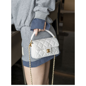 샤넬 25s 캘리 탑핸들 체인 핸드 백 화이트